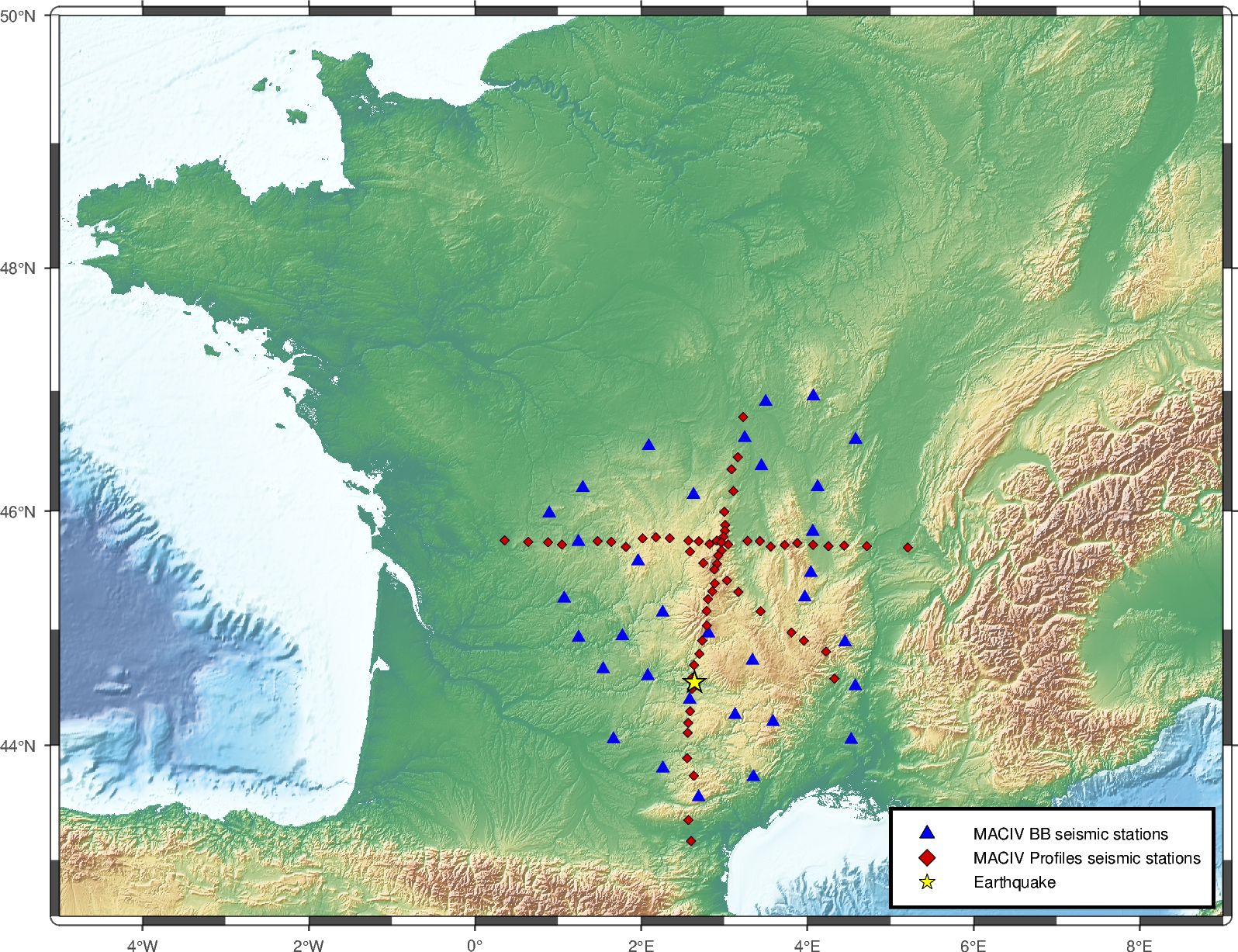 - carte de localisation du séisme dans les réseaux de stations sismologiques MACIV ;